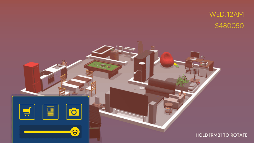 I did have a bit of trouble here and there placing the furniture. For example if I placed something close to a wall it'd end up falling on the wall and stood there tilted instead of being properly placed, might be a me issue tho. (maybe a placement preview or something that can be toggled on and off for those who might need it)
